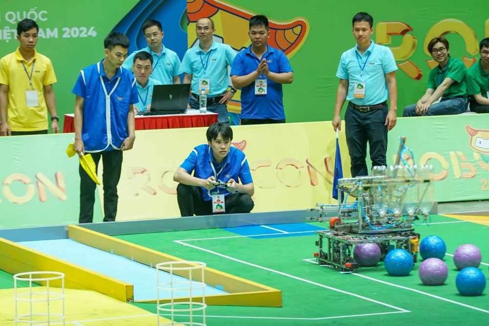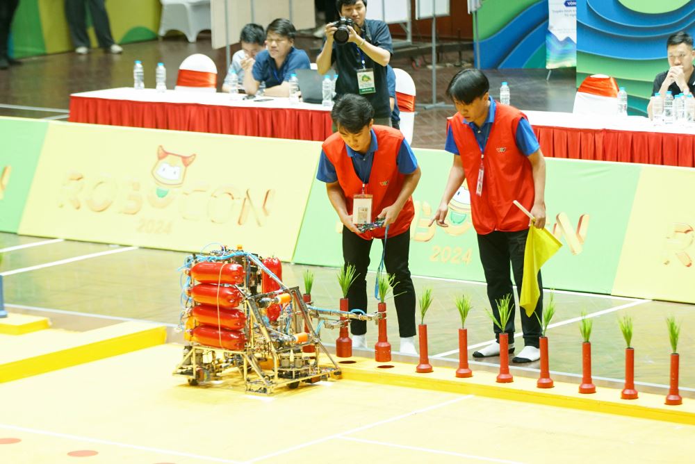 From May 4 - 5, 2024, the preliminary round of Vietnam Robot Innovation Contest 2024 (Vietnam Robocon 2024) kicked off at Tay Ho District Gymnasium, Hanoi with the participation of 64 teams from 23 universities, colleges and technical schools nationwide.