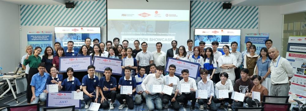 On May 14, 2024 at Cao Thang Technical College in Ho Chi Minh City, seven student teams representing 7 universities nationwide (Phenikaa University - Hanoi, University of Science and Technology - University of Da Nang, Lac Hong University - Dong Nai, Ho Chi Minh City University of Technology and Education, Industrial University of Ho Chi Minh City, Ho Chi Minh City University of Technology, Can Tho University) demonstrated their industry-linked prototypes to the audience at the industry mentorship eProjects Innovation Showcase under the ASU - Dow Vietnam STEM Program.