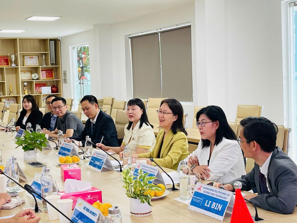 Attending the event, from LHU were Assoc. Prof. Dr. Nguyen Thanh Lam - Vice Rector; leaders of the Office of International Affairs and the Faculty of Information Technology. On the partners' side, there were Ms. Zhang Li - President of Guangdong Polytechnic of Science and Technology; Ms. Nguyen Thi Kim Huong - Director of UBTech Robotics Corp. Ltd, Representative of Duy Anh Fashion and Cosmetic Co., Ltd and their associates.