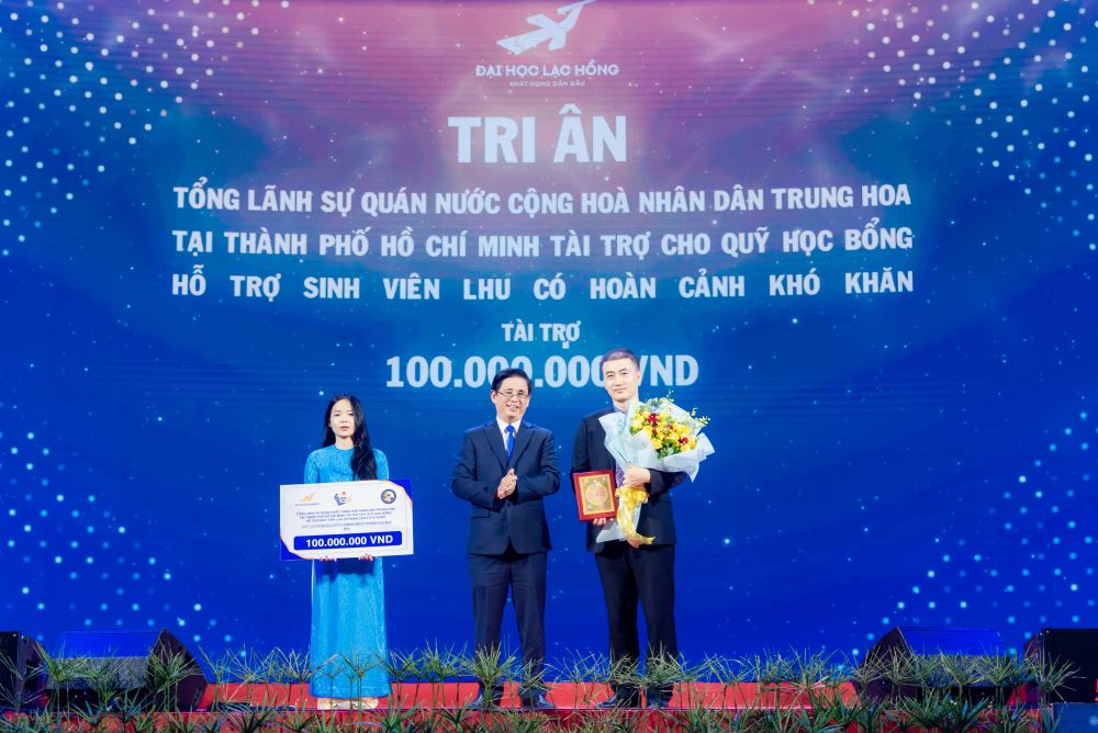 This year, LHU has awarded a total of more than 6 billion VND in scholarships to excellent and disadvantaged new students. On the occasion of the new academic year opening ceremony event, LHU honorably received companionship and sponsorships from the Consulate General of the People's Republic of China in Ho Chi Minh City, Joy Music Company Limited (SingNow), and Nhan Tai Viet Accounting and Auditing Company Limited. The scholarships include both cash and training courses, providing practical benefits to students.