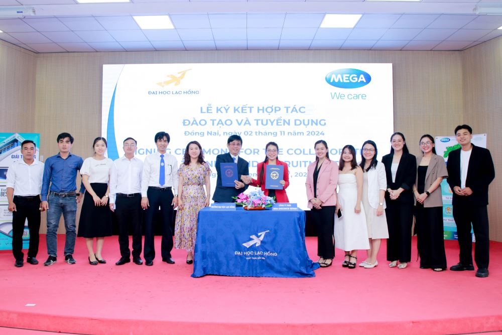 Attending the event, from LHU, were Dr. Lam Thanh Hien - Rector; Dr. Nguyen Thi Nhu Quynh and Dr. Cao Van Du - Dean and Vice Dean of the Faculty of Pharmacy; along with lecturers and staff. The Mega Lifesciences Company Limited was represented by Ms. Hoang Tuyet Nhung - HR Manager; Mr. Doan Khoi Nguyen - Senior Talent Acquisition Specialist; Ms. Nguyen Thi Van Anh - Brand Specialist; and other staff.