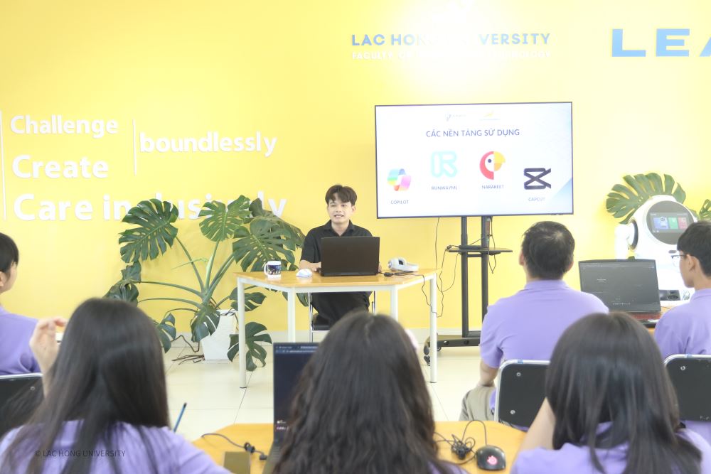 During the day, GFS students were excited to visit and experience LHU's facilities such as the library, system of labs, modern classrooms,... Specifically, at the AI practice room, they directly interacted with robots and technological equipment - powerful tools that support LHU students majoring in AI.
