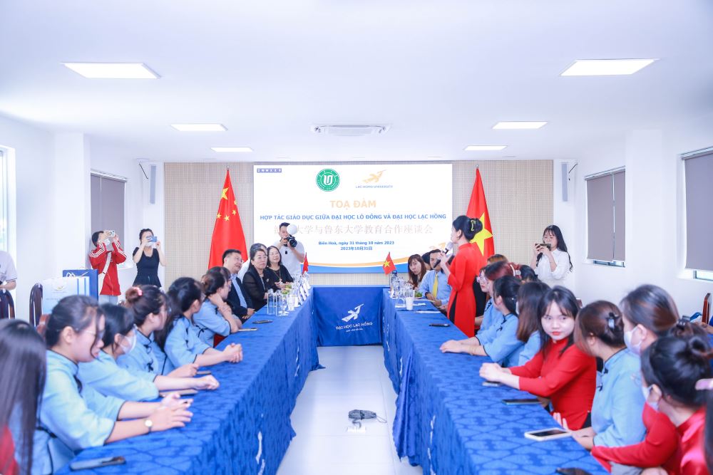 Tại buổi toạ đàm, về phía Đại học Lỗ Đông có sự tham dự của GS. JI Hongfang – Phó Hiệu trưởng; Ông ZHANG Deqiang – Trưởng phòng Giao lưu và Hợp tác quốc tế; Ông WANG Gang – Chủ nhiệm trường Ulsan; Bà MAO Jiabin – Phó Viện trưởng Học viện Giáo dục Quốc tế; Bà LIU Shaoxin – Trưởng phòng Chương trình Quốc tế. Về phía Đại học Lạc Hồng có sự tham dự của TS. Lâm Thành Hiển – Hiệu trưởng; ThS. Nguyễn Thị Hoàng Oanh – Trưởng phòng Quan hệ Quốc tế; ThS. Hoàng Tiến Dũng – Phó Trưởng phòng Quan hệ Quốc tế; ThS. Phan Thế Anh - Trưởng ngành Ngôn ngữ Trung Quốc, Giảng viên và sinh viên Ngành Ngôn ngữ Trung Quốc.