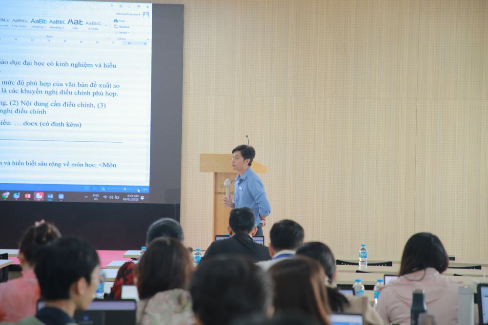 M.A. Nguyen Trong Vinh, Head of the Office of Academic Affairs, shared insights on reviewing course syllabi based on learning outcomes