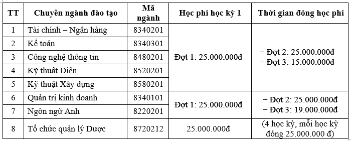 - Lệ phí xét tuyển các ngành còn lại: 500.000 đồng/thí sinh.