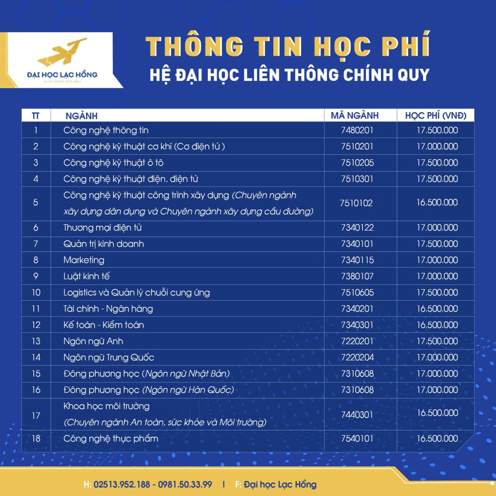 - Lệ phí xét tuyển: 1.000.000đ/Thí sinh;
