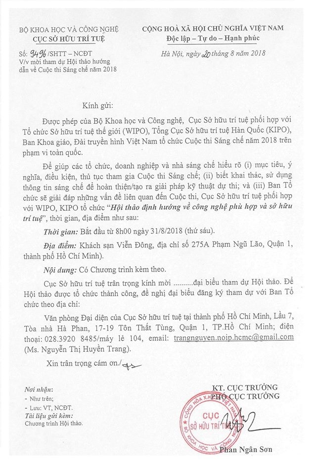 3. Ban Tổ chức sẽ giải đáp những vấn đề liên quan đến Cuộc thi, Cục Sở hữu trí tuệ phối hợp với WIPO, KIPO tổ chức “Hội thảo định hướng về công nghệ phù hợp và sở hữu trí tuệ”