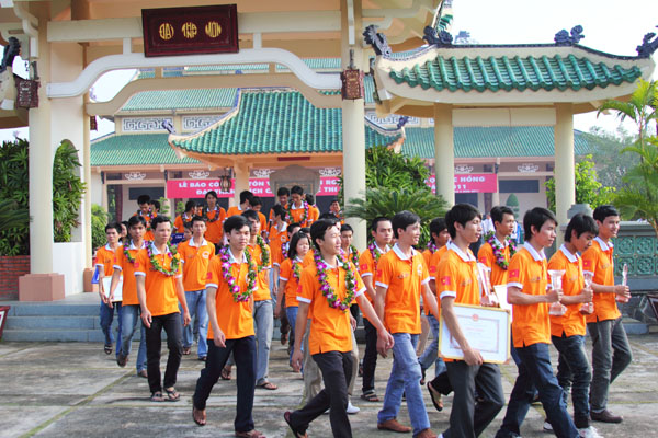 Lac Hong University's Robocon team attends the ceremony to report achievements held at Tran Bien Temple of Literature.