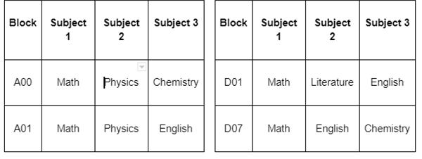 - Total score of three subjects in a block (in Table 1.1) must at least meet the minimum score annually specified in the admission scheme by LHU. The minimum score must be equal or greater than that annually specified by MOET.