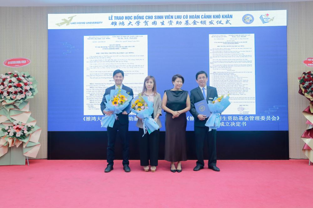 Representing the local government were Mr. Tran Quoc Toan, Deputy Director of Dong Nai Provincial Department of Foreign Affairs and Vice President of the Vietnam-China Friendship Association of Dong Nai Province; and Ms. Tran Thuy Tien, Secretary-General of the Union of Friendship Organizations and Vice President of the Vietnam-China Friendship Association of Dong Nai Province. Attending on behalf of the associations and businesses supporting the LHU scholarship fund were the Chinese Chamber of Commerce in Ho Chi Minh City, the Hunan Chinese Enterprises Association in Ho Chi Minh City, the Hubei Chinese Enterprises Association in Ho Chi Minh City, the Anhui Enterprises Association, and many more. Over 70 businesses and individual donors from Ho Chi Minh City, Binh Duong, Long An, Tay Ninh, and Dong Nai also participated. Representing Lac Hong University were Ms. Do Thi Lan Dai, Chairwoman of the Board of Trustees; Mr. Lam Thanh Hien, President; Mr. Nguyen Vu Quynh, Vice President; and leaders of various departments.