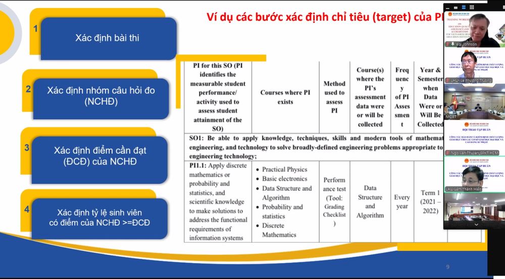 During the workshop, Assoc. Prof. Dr Scott Danielson shared approaches to measuring learning outcomes aligned with ABET standards, emphasising the practicality of these assessment tools. Dr Johnson Ong Chee Bin introduced AUN-QA standards, highlighting the importance of developing evaluation tools tailored to the specific contexts of individual institutions. Notably, representatives from Lac Hong University provided valuable insights. Dr Lam Thanh Hien, Rector of the university, discussed practical experiences in ensuring programme quality, particularly in applying both national and international standards.