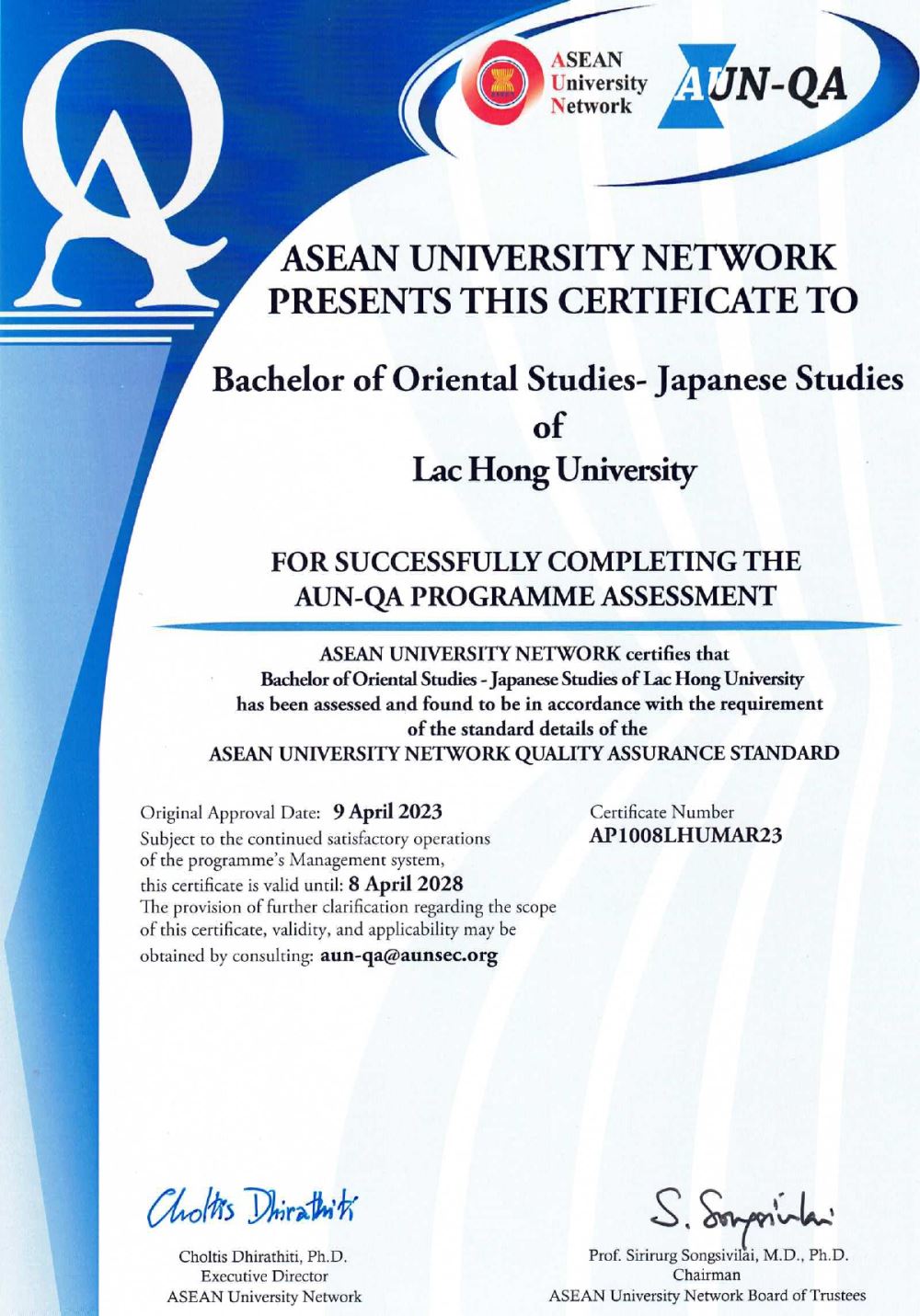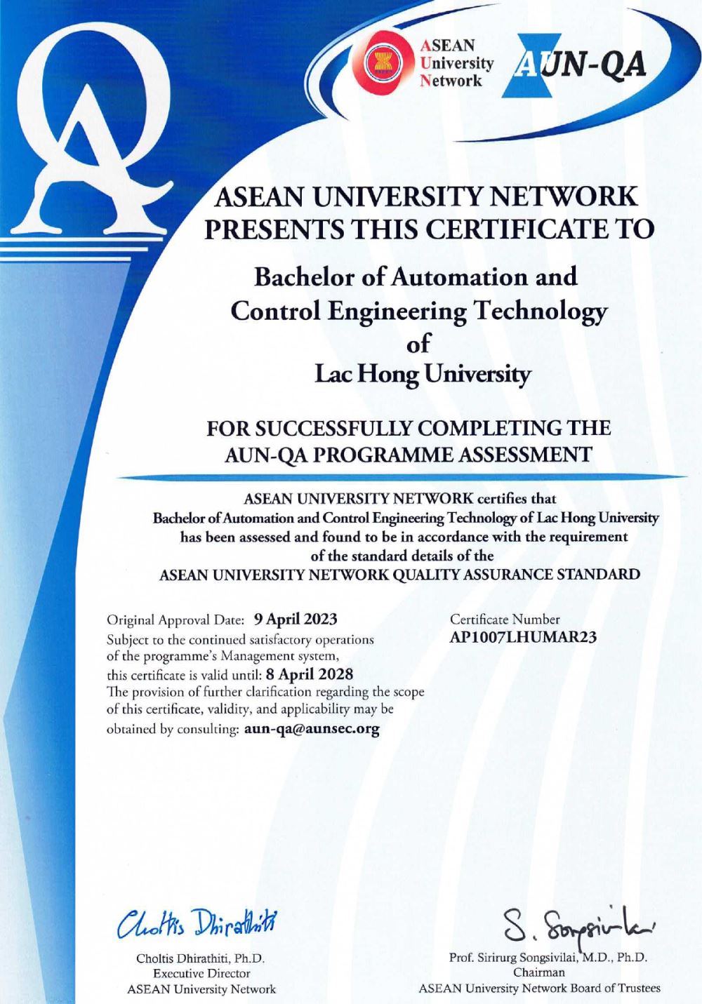 Our university takes pride in its accomplishments in achieving AUN-QA certification for several training programs. These include: