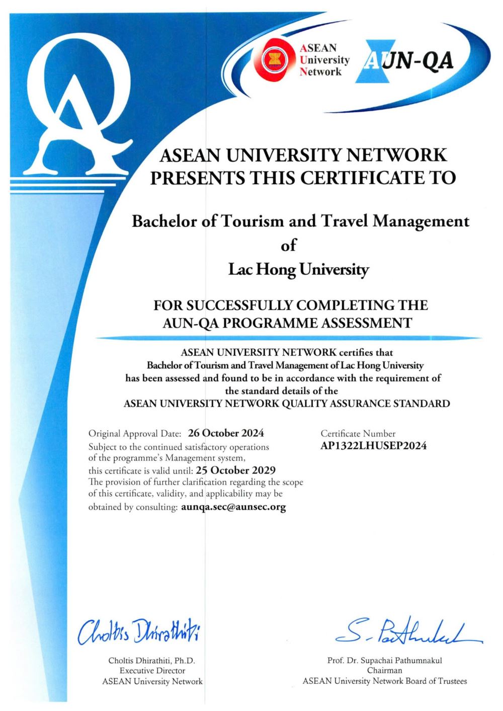 Lac Hong University has added four more programs to its AUN-QA certified list (2024)