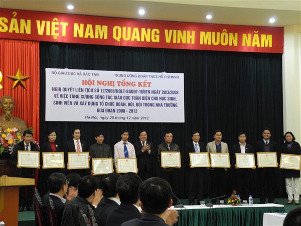 Ngày 28/12/2012, tại Hà Nội, Bộ giáo dục & Đào tạo đã tổ chức Hội nghị tổng kết về việc thực hiện Nghị quyết liên tịch số 12/2008/ NQLT-BGDĐT-TWĐTN ngày 28/3/2008 của Bộ giáo dục & Đào tạo và Trung ương Đoàn thanh niên cộng sản Hồ Chí Minh về tăng cường công tác giáo dục toàn diện cho học sinh, sinh viên và tổ chức đoàn, hội, đội trong nhà trường giai đoạn 2008-2012. Thầy Vũ Văn Tuấn – Phó Trưởng phòng Công tác sinh viên đại diện nhà trường tham dự Hội nghị.