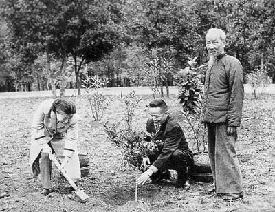 Bác Hồ cùng cán bộ, nhân viên trồng cây trong Phủ Chủ Tịch (Ảnh tư liệu).