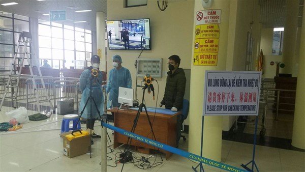 Kiểm soát khách nhập cảnh bằng máy đo thân nhiệt tại cửa khẩu Móng Cái