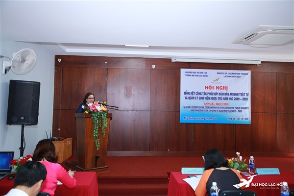 Tại Hội nghị, Lãnh đạo Phòng CTSV đã báo cáo tổng kết phối hợp đảm bảo ANTT giữa Trường Đại học Lạc Hồng và Công an phường Bửu Long năm học 2019-2020 theo Quy chế phối hợp số 202/QC-ĐHLH. CAP.BL ký năm 2017 và công tác phối hợp quản lý sinh viên ngoại trú năm học 2019-2020.