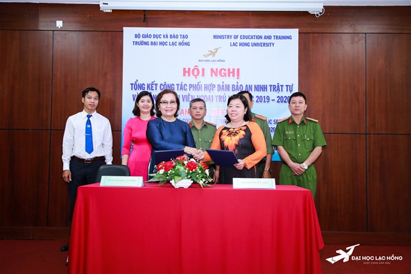 Cũng tại hội nghị này, đại diện Lãnh đạo Nhà trường – NGƯT.TS Nguyễn Thị Thu Lan và đại diện chính quyền địa phương – Bà Lê Thị Thu Tâm đã cùng ký kết phối hợp quản lý sinh viên ngoại trú trong năm học 2020-2021. Thông qua lễ ký kết này, Nhà trường và chính quyền địa phương sẽ tiếp tục tăng cường phối hợp quản lý sinh viên ngoại trú thực hiện tốt phong trào giữ gìn an ninh trật tự, phòng chống tội phạm, tệ nạn xã hội; tích cực tham gia phong trào toàn dân bảo vệ an ninh Tổ quốc tại địa bàn phường Bửu Long nói riêng, thành phố Biên Hòa nói chung.
