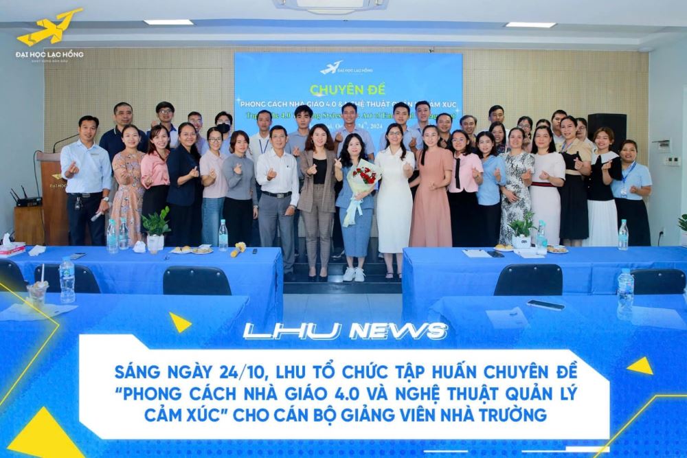 Với mong muốn giúp đội ngũ cán bộ, giảng viên, nhân viên trường nâng cao năng lực nghề nghiệp để thích nghi với môi trường giáo dục hiện đại, sáng ngày 24/10/2024, Trường Đại học Lạc Hồng đã tổ chức buổi tập huấn công tác chăm sóc hỗ trợ sinh viên học kỳ 1 năm học 2024-2025 với chuyên đề “Phong cách nhà giáo 4.0 và Nghệ thuật quản lý cảm xúc”, với sự tham gia của diễn giả TS Mai Mỹ Hạnh-Phó Trưởng khoa tâm lý học, Trường Đại học Sư phạm TP.HCM, Ủy viên Ban chấp hành Trung ương Hội Tâm lý học Việt Nam.