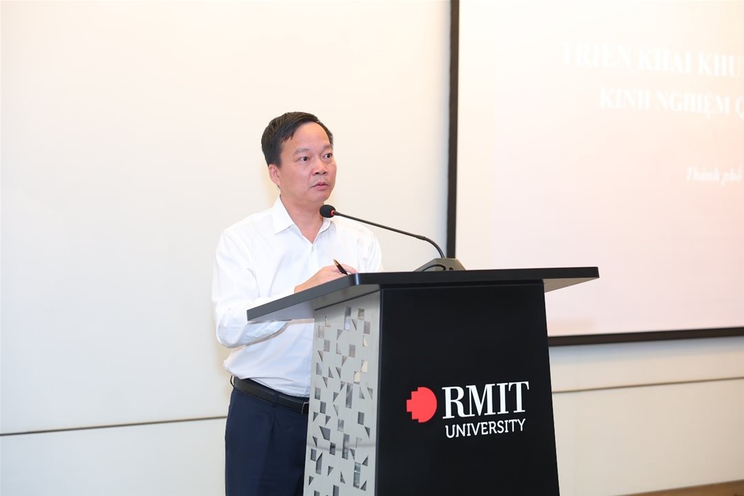 Ông Nguyễn Anh Dũng, Phó Vụ trưởng Vụ Giáo dục đại học (Bộ GD&ĐT) phát biểu khai mạc hội thảo. Ảnh: RMIT