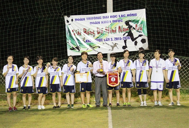 Chiều tối ngày 13/05/2016, tại sân bóng Thiên Long, P. Bửu Long đã diễn buổi Bế mạc Giải Bóng Đá Mini Nam – Nữ Sinh Viên Khoa Dược – ĐH Lạc Hồng năm học 2015 – 2016. Đội bóng đá nam lớp 15DS112 và đội bóng đá nữ lớp 13DS118 đã xuất sắc vô địch hai hạng mục này của giải đấu.