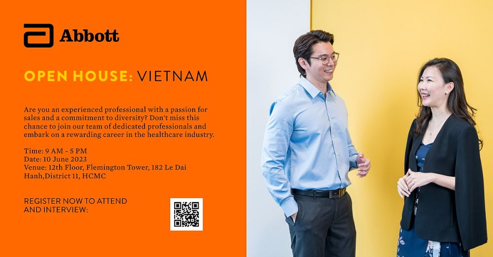 Abbott là một trong những công ty chăm sóc sức khỏe đa quốc gia lớn nhất trên thế giới, xin mời bạn tham gia Chương trình Open House độc quyền của chúng tôi. Chúng tôi đang tuyển dụng ba vị trí: Medical Representative - Nutrition, Medical Representative - Pharma OTC, and Key Account Specialist – Abbott Rapid Diagnostics. Đừng bỏ lỡ cơ hội này để tham gia vào đội ngũ chuyên gia của chúng tôi và có sự nghiệp xứng đáng trong ngành chăm sóc sức khỏe.