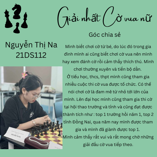 Giải nhất Cờ vua nữ: Nguyễn Thị Na - 21DS112