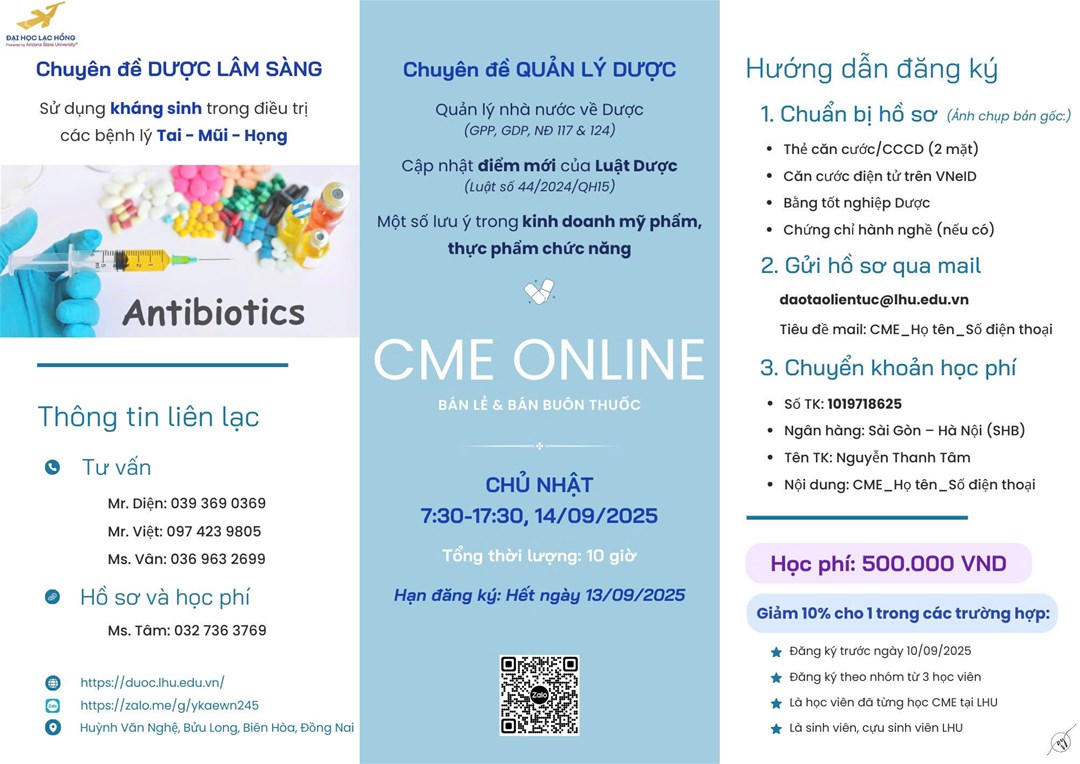 THÔNG BÁO LỚP CẬP NHẬT KIẾN THỨC CHUYÊN MÔN VỀ DƯỢC NGÀY 14.9.2025