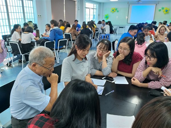 The students exchanged lively issues such as how to learn primordially and how to structure Kanji. Besides, Japanese teaching assistants also give experiences on how to learn Kanji.