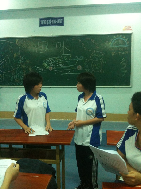 Vở kịch mang tên "Sở thích của bạn” được diễn bằng tiếng Nhật do bạn Vân - 09DN111 và Hường - 09DN111 trình diễn 「趣味」という日本語での演劇 |