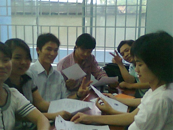 Hình ảnh các bạn sinh viên đang thảo luận đề tài [葉書」