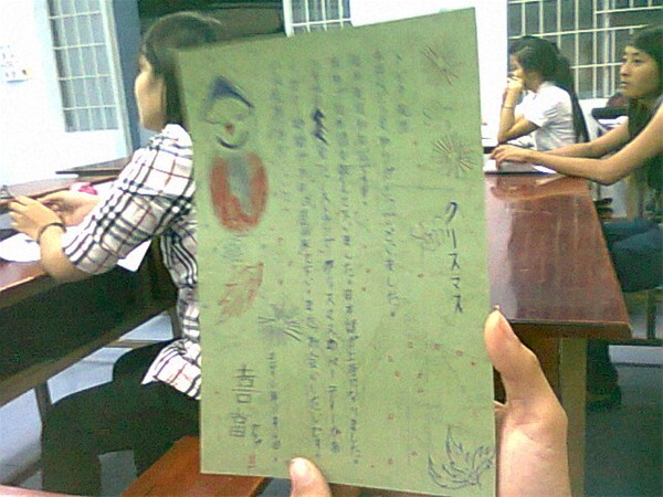 皆さんはクリスマスのお祝いについての葉書を書いてみました。みなさんはとても楽しかったと言いました。