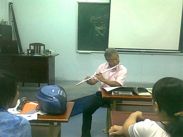 Hình ảnh thầy Tobita Minoru góp tiết mục thổi sáo