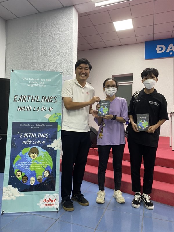 Ngày 15-08-2022, tại Hội trường E501, CLB ngành Nhật Bản học đã tổ chức buổi giới thiệu sách mang tên “EARTHLINGS NGƯỜI LẠ ẤM ÁP” của nhóm tác giả người Nhật với mục đích giúp sinh viên ngành Nhật Bản học tiếp cận với văn hóa đọc cũng như tạo cơ hội để sinh viên giao lưu với chính tác giả của quyển sách.