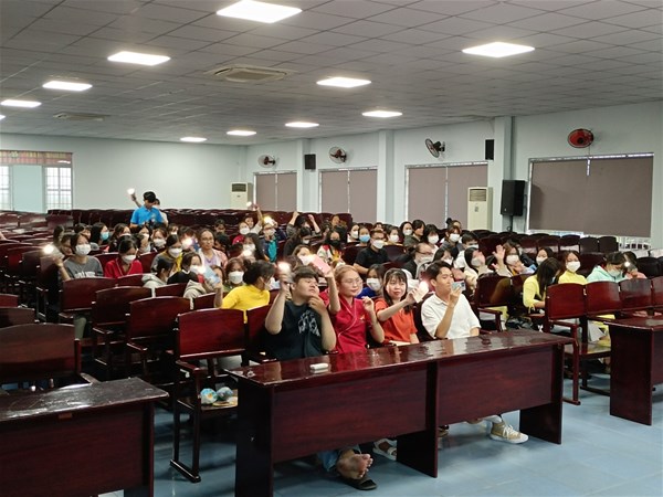 Các bạn sinh viên hào hứng với tiết mục văn nghệ