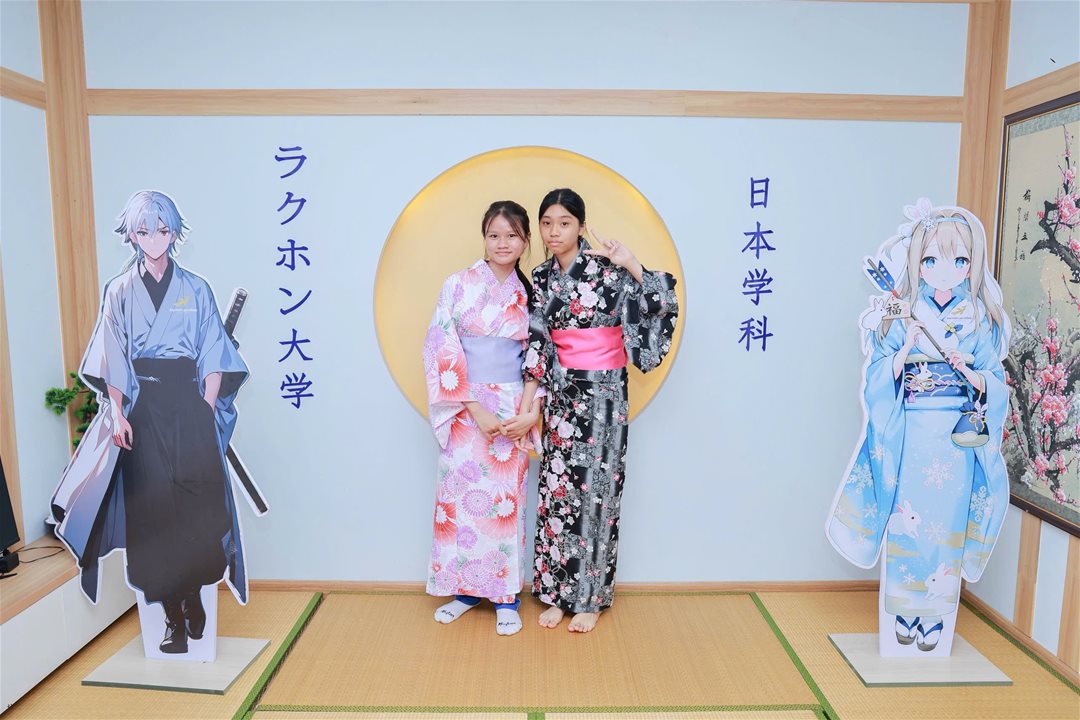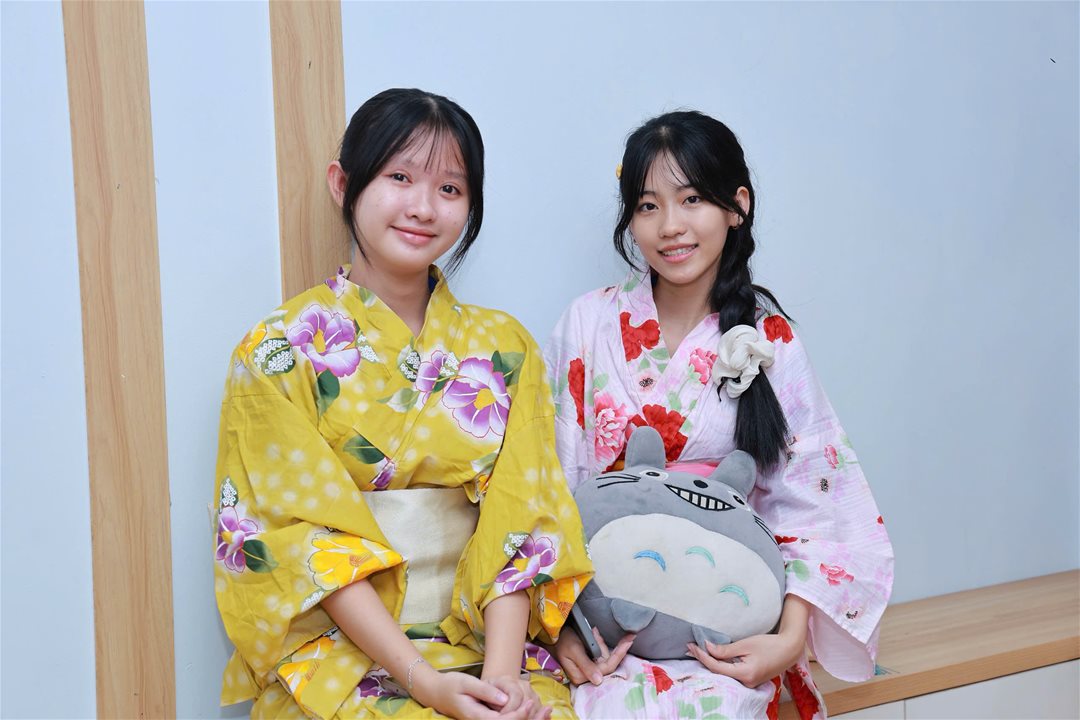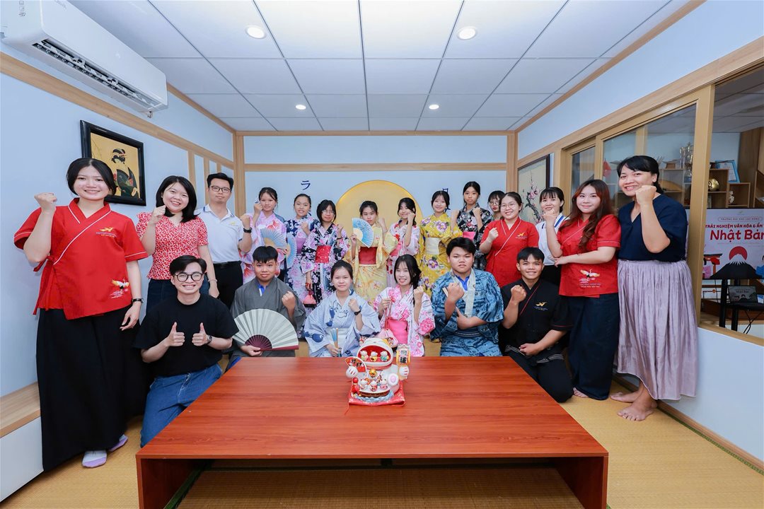 Ngay sau lễ bế giảng, học sinh đã tham gia chuỗi hoạt động trải nghiệm văn hóa Nhật Bản như mặc Yukata, làm bánh Takoyaki, chế tác bùa Omamori và chụp ảnh lưu niệm trong không gian đậm chất Nhật tại khu vực học tập của ngành Nhật Bản học.