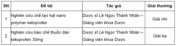 Giải ba của Dược sĩ Lê Ngọc Thành Nhân – Giảng viên khoa Dược