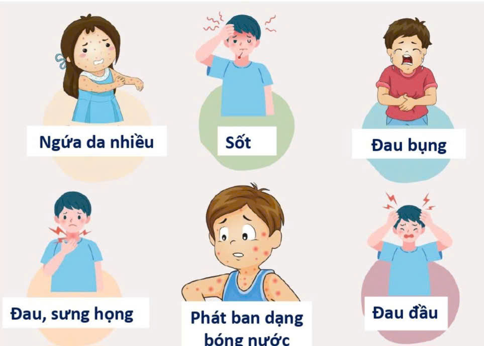 Hình 2. Một số triệu chứng của bệnh thủy đậu