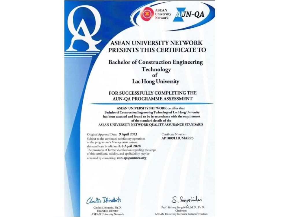 When it comes to choosing a university program, the quality of education is always the most important factor for students and parents. In the current educational context, a program achieving AUN-QA (ASEAN University Network-Quality Assurance) certification is not only a testament to excellent educational quality but also opens up many opportunities and benefits for students. student. This is why the AUN-QA certification of the Civil Engineering program at Lac Hong University brings great value.