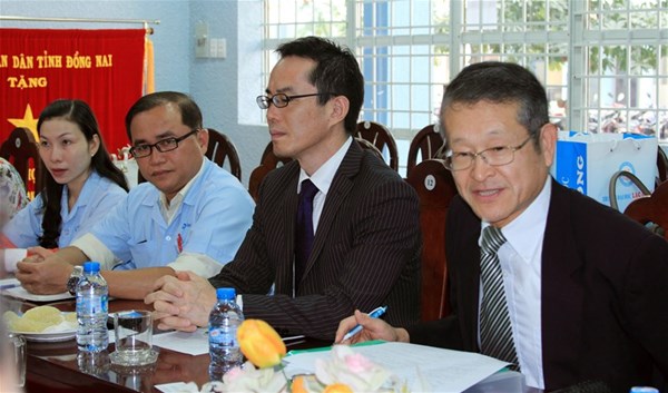 Các vị lãnh đạo cấp cao của Mabuchi Motor trong chuyến đến thăm trường