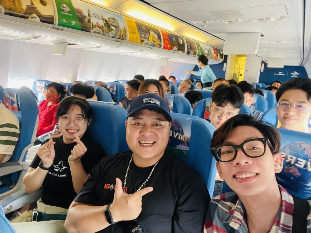 Hình 2: Hình ảnh của đoàn trên máy bay trước giờ cất cánh
