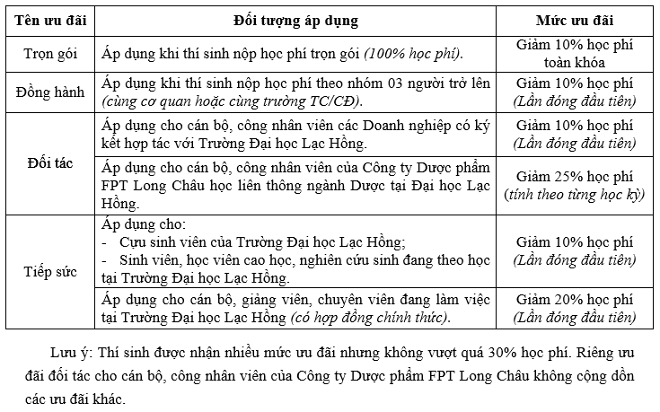 Trường Đại học Lạc Hồng thông báo tuyển sinh hệ Liên thông, Đại học văn bằng 2 chính quy - Đợt 1 năm 2025 như sau: