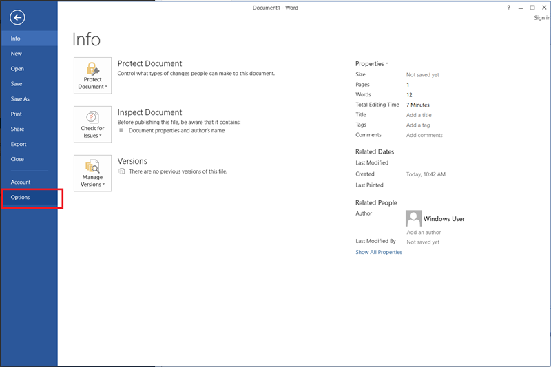 Bước 1: Vào menu File chọn Option