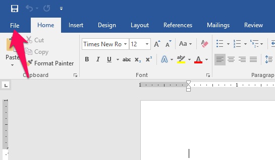 Bước 1: Tại cửa sổ Word/Excel/PowerPoint, bạn nhấn vào tùy chọn File trên thanh công cụ.