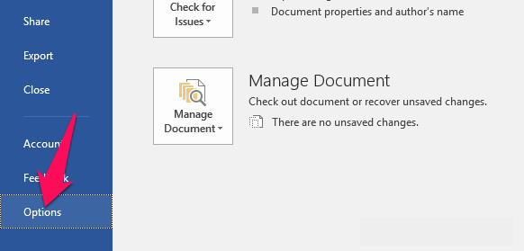 Bước 2: Khi cửa sổ File được mở, bạn chọn Options .