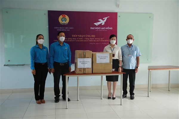 LHU on October 15 received 24 computers and 9 laptops donated from Dong Nai Provincial Department of Construction, Dong Nai Provincial Development and Investment Fund, Dong Nai Provincial People's Procuracy, Dong Nai Provincial Tax Department's Labor Union, and Dong Nai High School for the Sports Gifted.