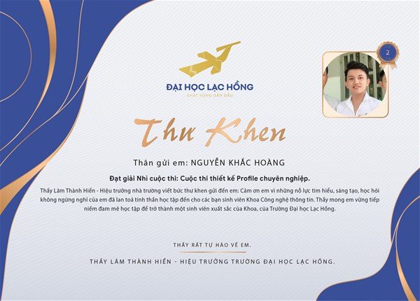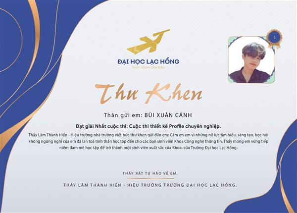 Faculty of Information Engineering Technology (IET) on November 22 announced the prizes of Professional Profile Design Contest which was launched early October 2. Accordingly, Bui Xuan Canh - second year student wins First prize worth 300,000 VND plus one permanent fully functional Canva account. Nguyen Khac Hoang and Nguyen Minh Thy take Second and Third places, respectively.