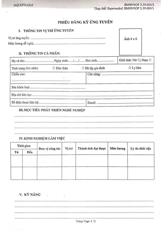 Recruitment - Imexpharm Corporation - Dong Nai branch