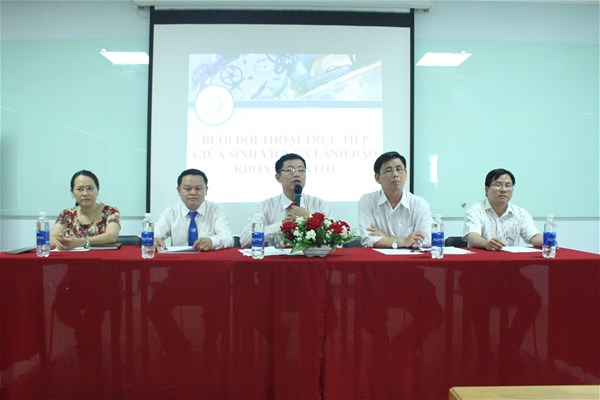 At the beginning of the dialogue, Dr. Nguyen Van Tan - Dean of the Faculty, said that the reason for the conversation was so that students could exchange and comment on all aspects such as Training program, facilities, student services (student affairs, re-enrolment, grade correction, supportive policy...). To understand and offer the most effective solutions for the best performance in teaching and learning management of the Faculty.