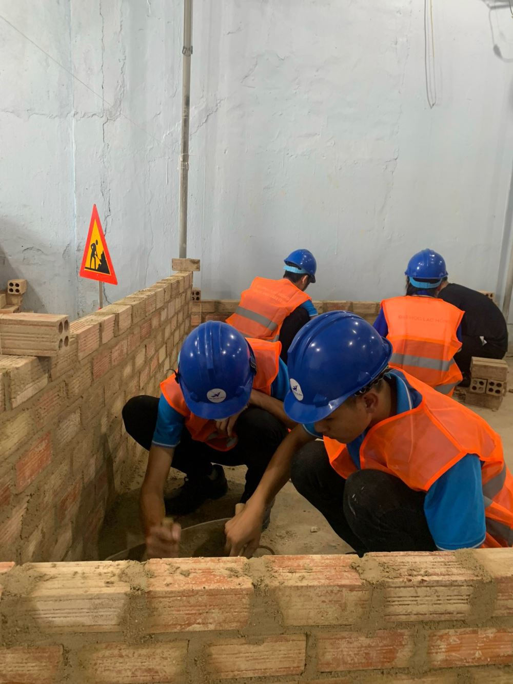 • This is a place for students to practice and practice their careers. Here they will learn about building materials, concrete, pouring samples, building, painting... get acquainted with construction work on the construction site.